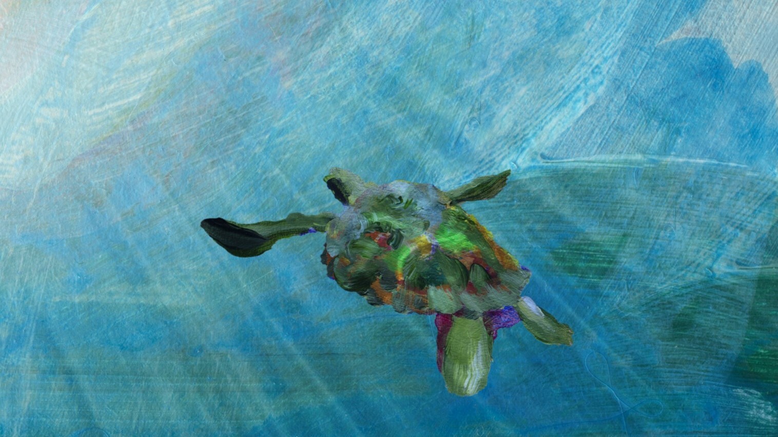 This video artwork by Jacco Olivier is called Current, as in, the current against which this sea turtle swims, towards the light. But also, in the sense of its other meaning: ‘presently’ or ‘now’. The sea turtle is a victim of climate change. The temperatures of the sand in which it lays its eggs determines the sex of the turtles. Due to rising temperatures mostly female turtles are being born, causing the species to be endangered. A current issue. Can we turn the tide? And will the sea turtle ever reach the light?